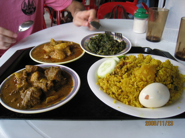 咖哩鴨肉 咖哩羊肉 蔬菜 內含羊肉的飯 一字排開只要新幣13塊, 赫啊