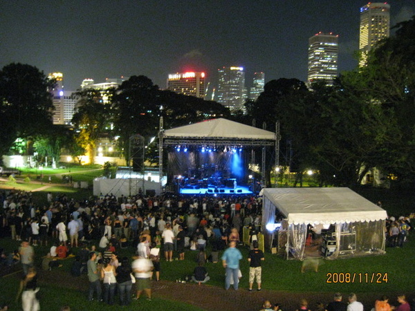 這是繼著在榴槤裡頭,欣賞不是探戈的Yo La Tengo,和吊燈垂降速度不夠迅雷的歌劇魅影之後,我在獅城看的第三場藝文演出,也是首度在Fort Cannings看表演,被高樓圍繞的一方綠茵,感覺有點侷促.